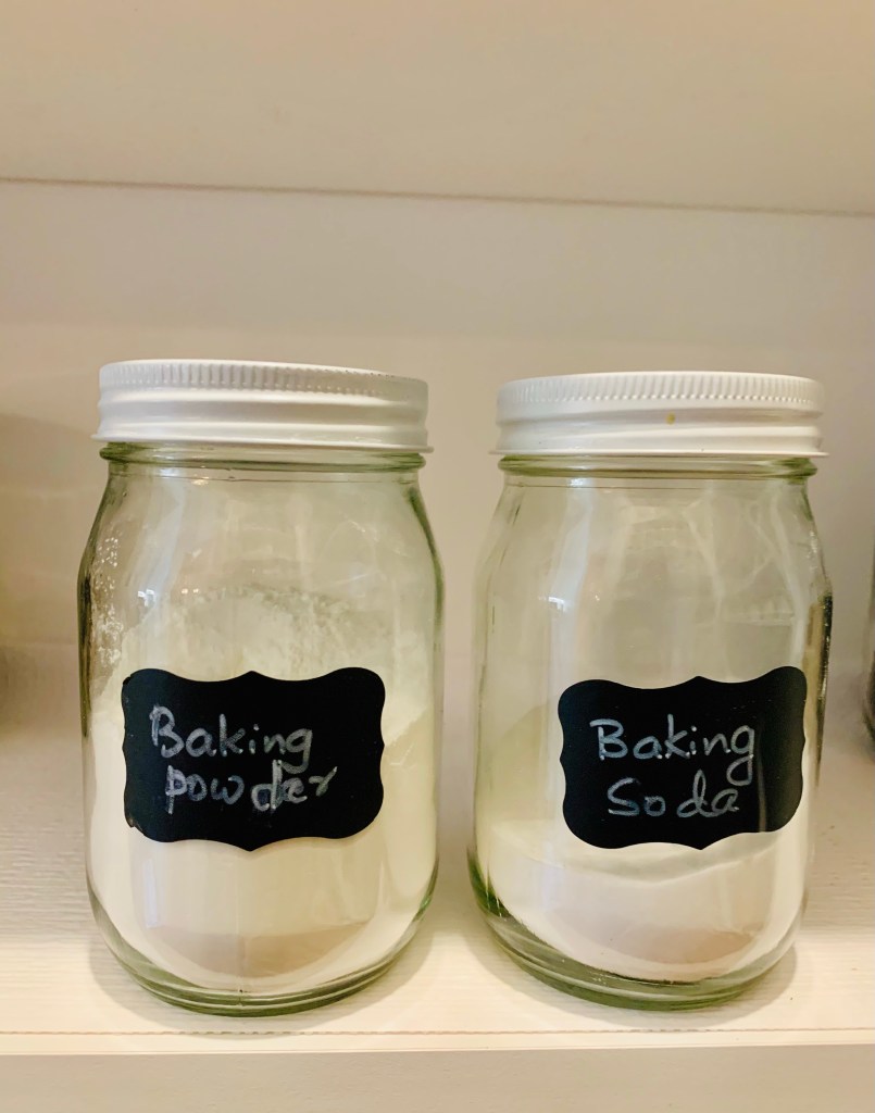 We also put all the baking ingredients in little jars. We finally had a place to put our baking supplies in one place. I know that some people don’t want to do this and it isn’t exactly necessary but I’d advise you to clean up your pantry so it’s easier to get supplies. I remember it took me about 15 minutes to make a lemon pie and now it is shortened to five minutes because of the brilliant organization.