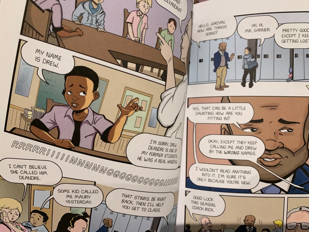 Today, I’m going to be reviewing New Kid, a book I read recently. New Kid is about a kid who is going to middle school at a new school where there isn’t much racial diversity. For some reason, most of the teachers and students are always messing up the names of the other kids. Especially the main characters’ Homeroom teacher. There are also bullies at the school. And there’s a thing called financial aid for people who don’t have enough money to afford school.