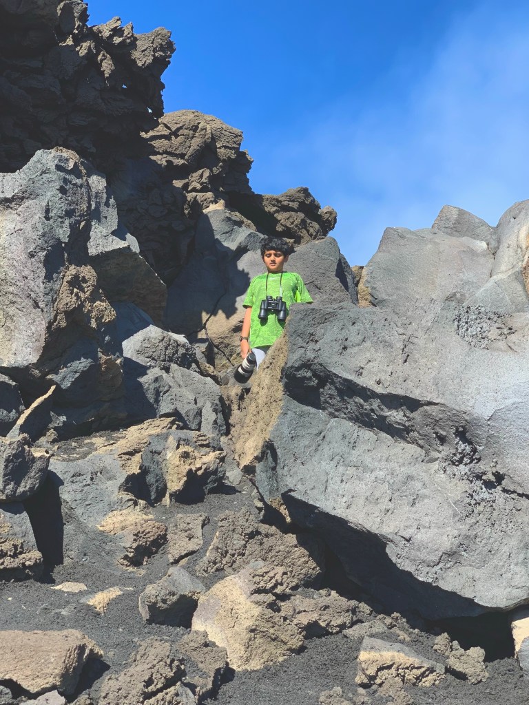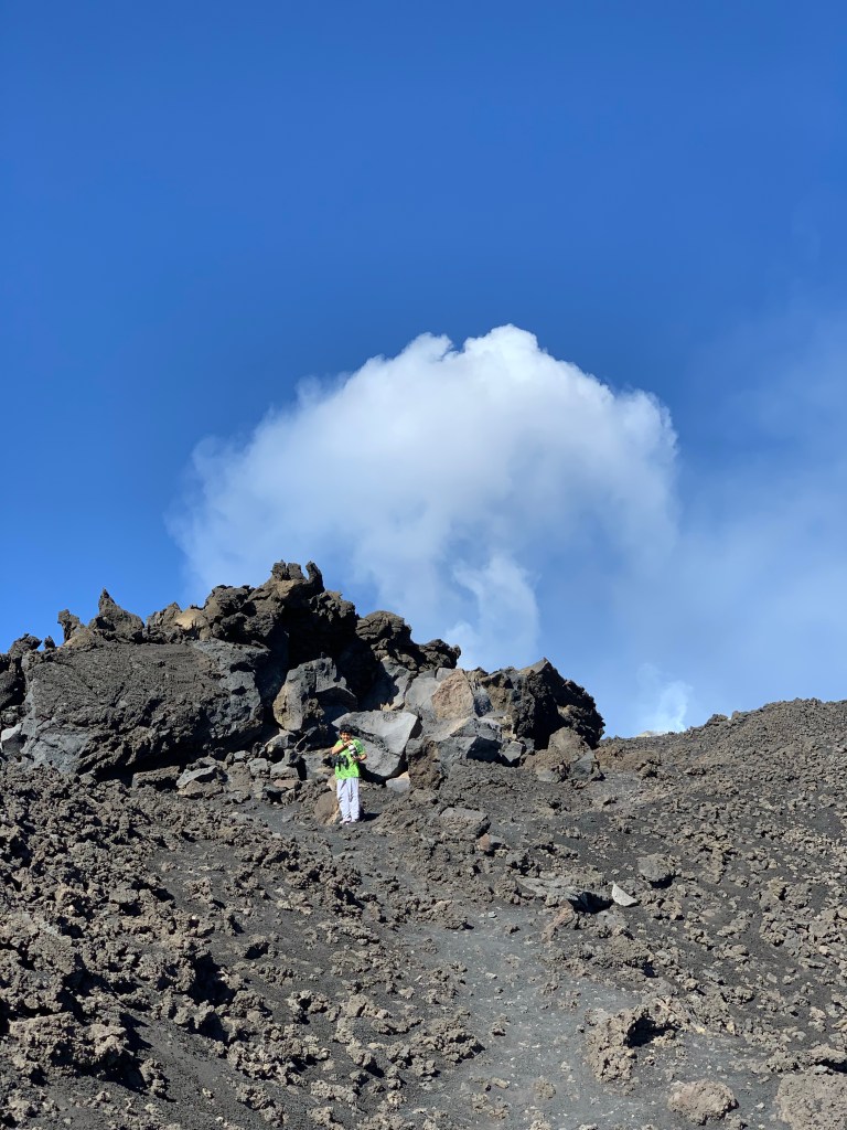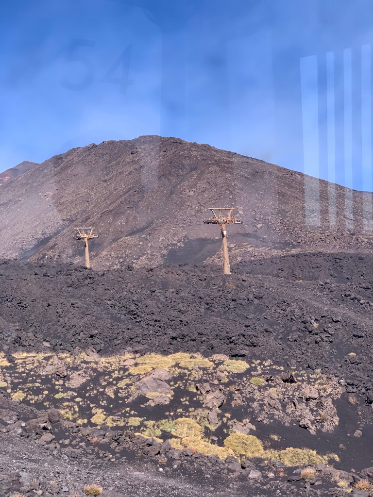 My dad and mom were recording some stuff so I just walked around everywhere. All the rocks are made from volcanic ash and lava. The ground was black and there was ash everywhere. There’s a huge formation of lava rocks and a bunch of very small rocks and medium-size rocks scattered everywhere across the ground. There was also a gift shop and a restaurant there if anybody wanted to get some stuff there. We ended up getting something, A little sculpture of the volcano that was painted. All the sculptures at the shop were made from rocks and everything was all black, other than the ones that were painted. There was also a gift shop at the gondola at the bottom of the mountain, but we didn’t go there. Going down the mountain was seemingly more bumpy, but felt way shorter. Mount Etna was great. Anyway, bye everyone and see you later!