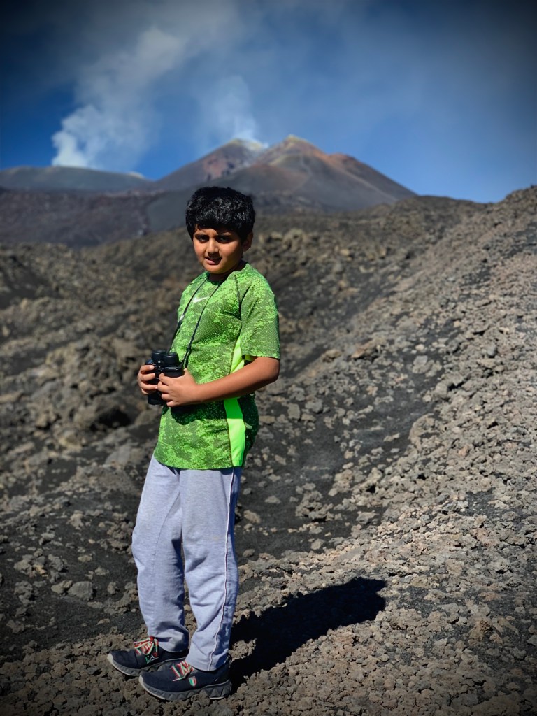 Hello everyone! Today, I am going to be talking about our trip to Mount Etna. Mount Etna is a mountain located in Sicily. It’s not really a mountain, because it’s an active volcano . You may think that’s really dangerous, but you’re going to get an alert if you’re near the volcano and it’s about to erupt.