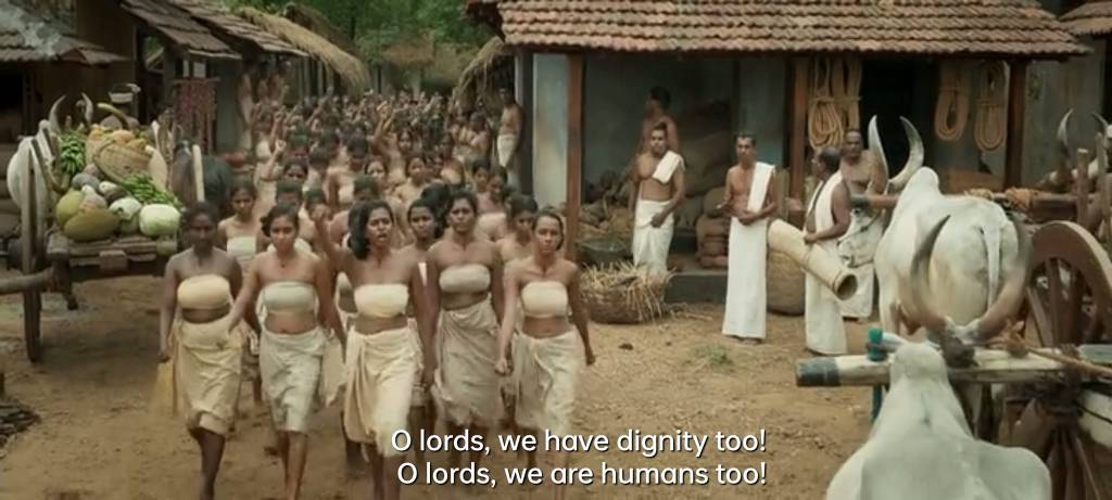 Hi everyone, today, I am going to be talking about a Malayalam movie. This movie is set in the 19 century and shows a lot of Indian history. And by India I mean one region in India. Travancore. I am from Travancore, so it’s kind of important to me. Travancore on the 19 century wasn’t exactly the best place to be for the lower castes. Women had no rights. They had to pay taxes if they wanted to cover their upper body and men couldn’t wear mustaches without paying taxes. There were a lot of unfair taxes and everything was horrible.