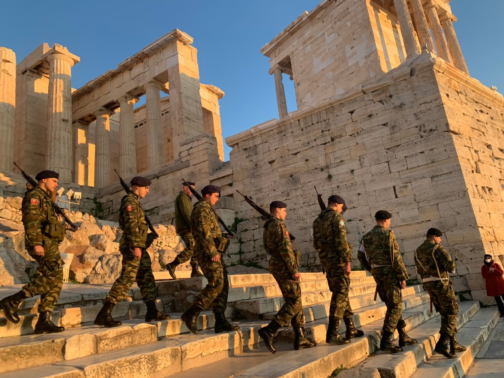 Also, while we were there of group of soldiers came in a line and basically moved everyone away from the Greek flag on the hill. They then did a procession of taking down the flag and leaving with it. They had guns and everything too so it was a bit scary. The reason why they did this is because the king Constantine II of Greece died a while ago so they did it in honor of him. It’s a bit sad that the king died, and I think that the procession to honor him was a nice way to be sent off.