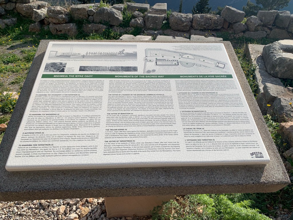 Lots of people from all over the world came to see her as she was very important in ancient world. The Pythia was always a woman. Delphi was considered as Apollo’s sacred spot so that’s one of the reasons why we visited it. There are all sorts of treasuries that we saw there. The biggest structure there was probably the temple of Apollo, where the oracle would actually sit and do the prophecies.