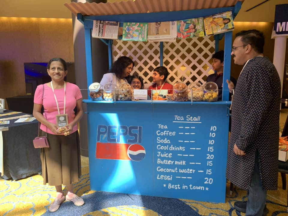Our shop had a small blue stand with a ceiling and a light attached to it for illumination. We creatively hung the chips from the ceiling to give the stand a traditional Indian look. We had a fake menu with exaggerated prices, and although some people found it funny, others criticized our pricing tactics. Nonetheless, we had some memorable moments, like someone making a $20 donation by paying extra for a bulk order.We had some funny interactions with customers when they got confused by our decorative menu while trying to check the prices. Moreover, we had to start charging for photos because many people wanted pictures with us, which became quite overwhelming and distracting from serving customers.