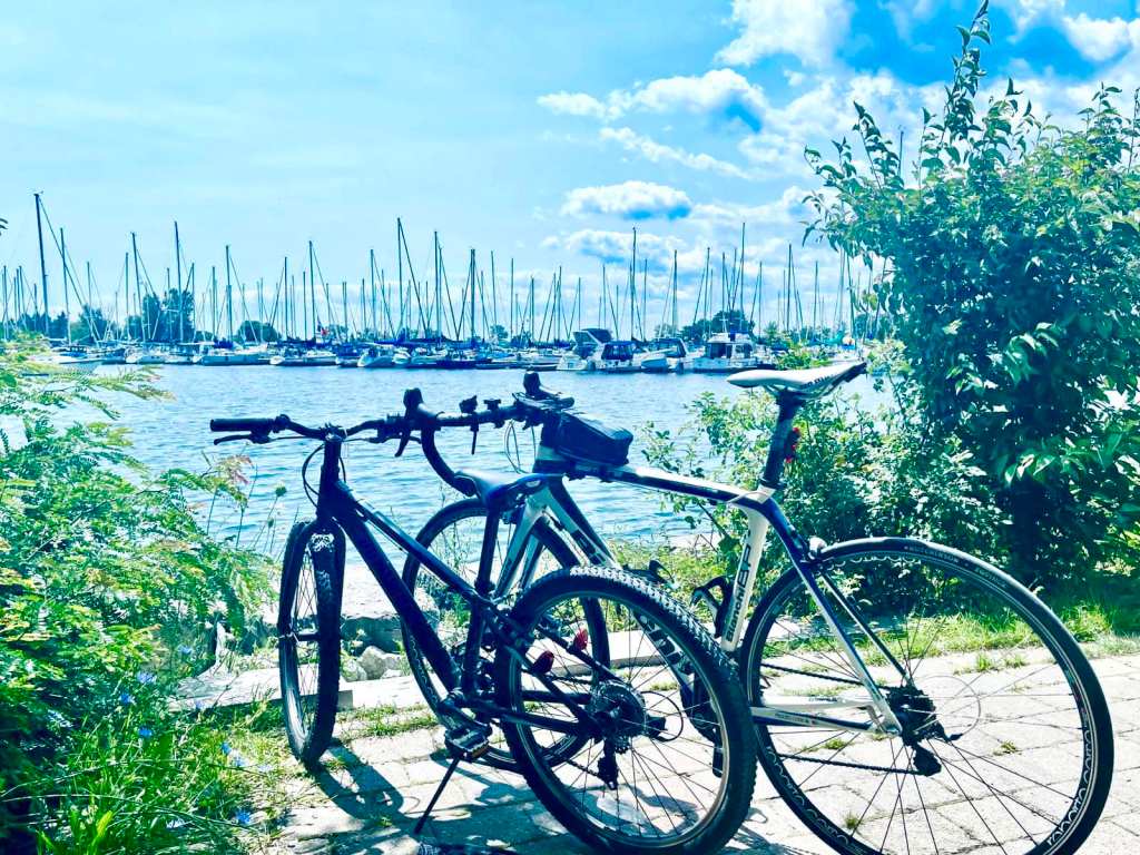 During the trip, we also passed by the Mimico Waterfront Trail. We biked through scenic spots such as Rotary Peace Park and the Rotary Tennis Courts. Additionally, we went over some cool terrain, and while passing by the baseball field, I could’ve sworn I saw my friend from camp. It was a delightful coincidence, because we met where we had been to many times together at camp.