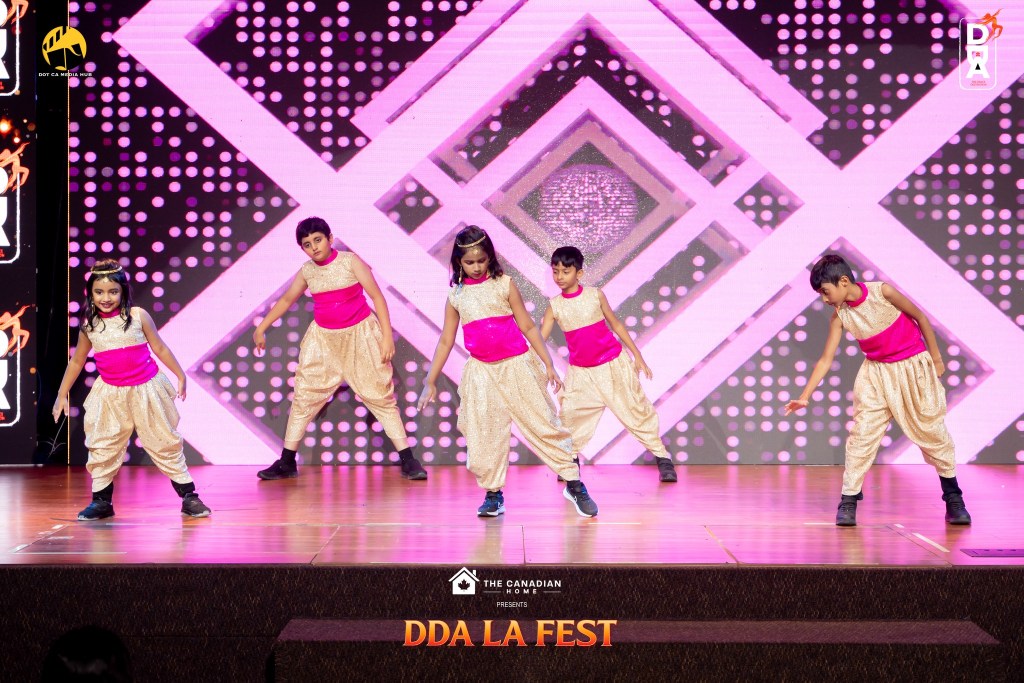 The event was generously sponsored, by one of the most prevalent sponsors being Manoj Karatha and Canadian Home, known for supporting various Indian events in Toronto, Brampton, Mississauga, and the surrounding areas. Behind each dancer, there was a screen displaying captivating videos that changed based on the music, adding an extra layer of visual excitement to our performances. When it was time for the final round, we changed into our dance academy T-shirts and black pants and returned our costumes to the DDA team.