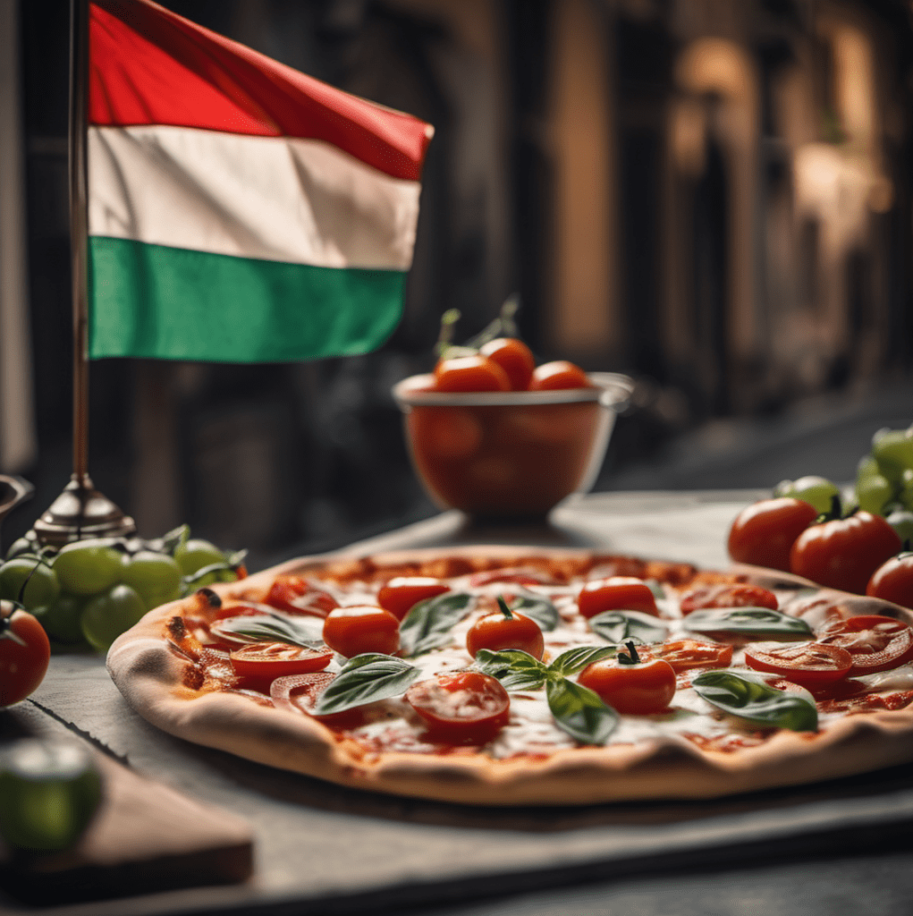 The colors of the pizza mirror those of the Italian flag: white, green, and red. The white represents the creamy mozzarella cheese, while the red symbolizes the special tomato sauce spread atop the pizza crust. Lastly, the green signifies the fragrant basil leaves, adding a fresh burst of flavor to every bite.