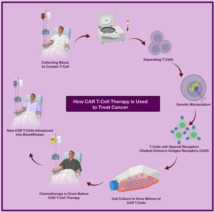 These aren’t your average T-cells (the body’s natural defense team). Oh no, these are souped-up, genetically engineered super-soldiers! Scientists take your own T-cells and give them a fancy new accessory: a Chimeric Antigen Receptor (CAR). It’s like giving your immune cells a high-tech radar system to detect cancer villains.But wait, there’s more! These CAR T-cells don’t just detect cancer; they’re programmed to attack it with laser-focused precision. It’s like turning your immune cells into tiny Terminators, but instead of “I’ll be back,” they say, “Cancer, you’re outta here!”